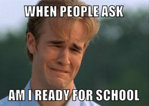 Now it’s this: Where is my class? Am I in the wrong classroom? Who is my teacher? I’m two weeks behind on the first day. Do I really need the book? What is a noun… I forgot.